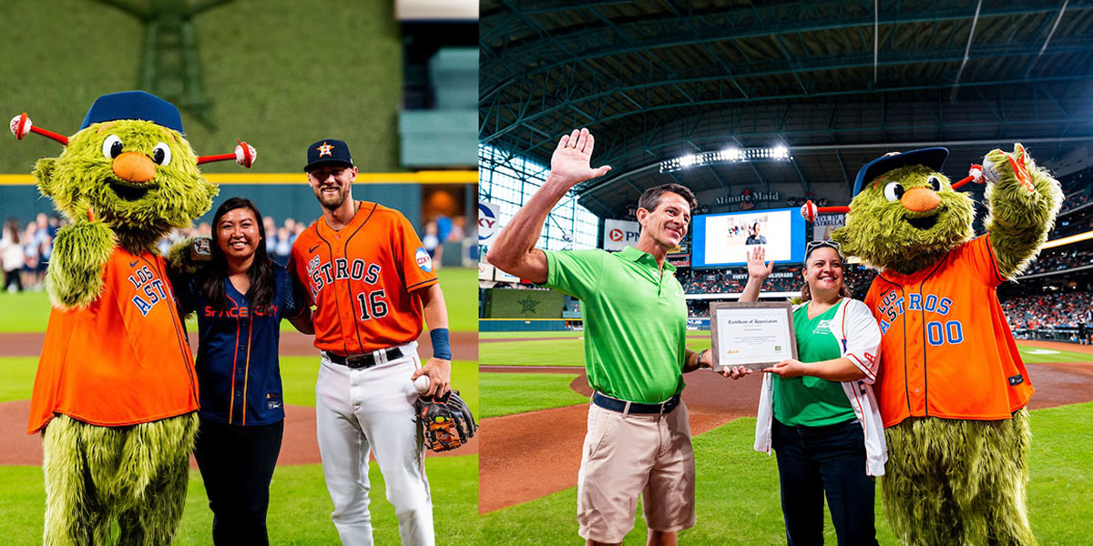 “I’m a big Astros fan, especially of Jose Altuve, so to participate in the game was a thrilling experience for me,” said Mary. “I won the opportunity to throw the first pitch after winning our company sustainability bingo game, so I’m grateful to Apache for providing these fun experiences that allow us to make great memories as employees.”